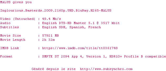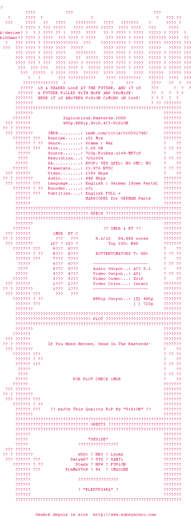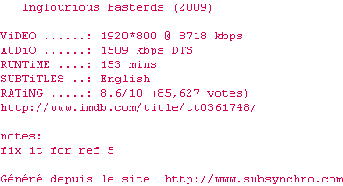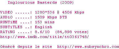 Le commentaire de Yaumegui Commente par Yaumegui (580), Le Lundi 16 Decembre 2013 à 21h33 Brad Pitt et surout Christoph Waltz portent le film, Mélanie Laurent le plombe. 8.5 / 10 2 0
