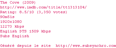 Voir le nfo de la release The.Cove.LIMITED.2009.1080p.BluRay.x264-BestHD