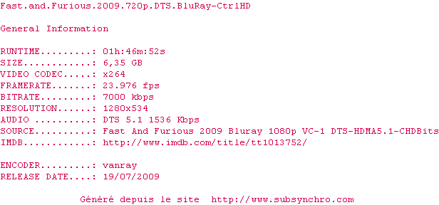 Telechargez le RSS « Fichier de la release Fast.and.Furious.2009.720p.DTS.BluRay-CtrlHD »