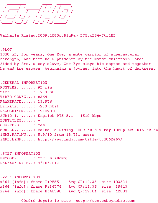 Telechargez le RSS « Fichier de la release Valhalla.Rising.2009.1080p.BluRay.DTS.x264-CtrlHD »