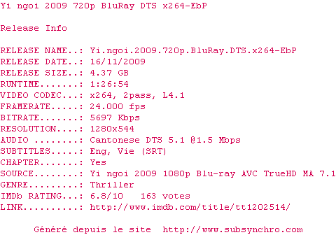 Accident.2009.BluRay.720p.DTS.2Audio.x264-CHD.srt Ce fichier a été testé et validé par Stank07 Ajouté par Stank07 Ajoute le 17-01-2016 16:56:00 Format : SRT Italique : Oui Taille : 0.00Ko Telechargement : 54 Testé par le membre Ajouter cette release à ma collection en cas de telechargement des sous-titres 0 0 0 Telecharger le ZiP contenant NFO, Affiche, Sous-titre (*.srt) Commentez le fichier Accident.2009.BluRay.720p.DTS.2Audio.x264-CHD.srt Commentez le fichier Accident.2009.BluRay.720p.DTS.2Audio.x264-CHD.srt Commentez ce fichier Le fichier 10452-1453046160.srt n'existe pas ! Telechargez le RSS « Fichier de la release Yi.ngoi.2009.720p.BluRay.DTS.x264-EbP » Retour a la release « Yi.ngoi.2009.720p.BluRay.DTS.x264-EbP »