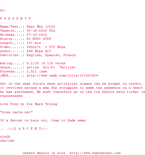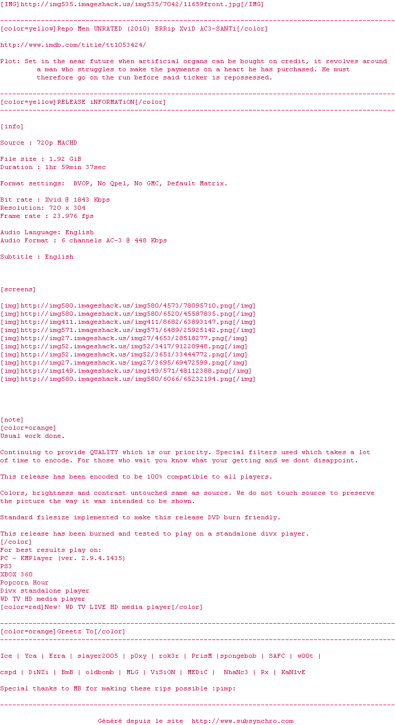 Le commentaire de Yaumegui Commente par Yaumegui (577), Le Dimanche 31 Aout 2014 à 22h38 Je ne note pas, j'ai tenu 40 minutes. D'habitude je bois jusqu'à lie ce genre de navets, surtout d'anticipation ou SF, mais pour ce film cela m'a été impossible, j'avais trop de peine de voir Forest Whitaker se débattre dans un scénario aussi plat vu, revu et survu. Sur les 40 minutes, il n'y a rien à sauver, j'ai lu la fin de l'histoire, je ne regrette vraiment pas mon choix. 0 1