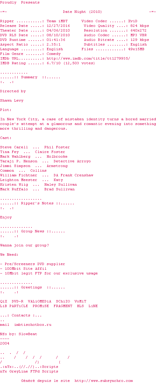 Voir le nfo de la release Date.Night.2010.BRip.XviD-iMBT
