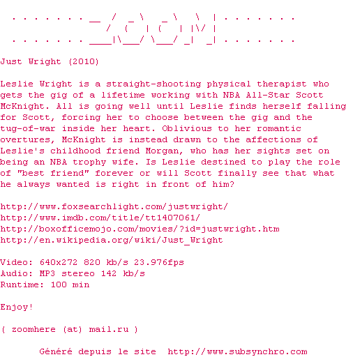 Voir le nfo de la release Just.Wright.DVDRip.XviD-ZOOM