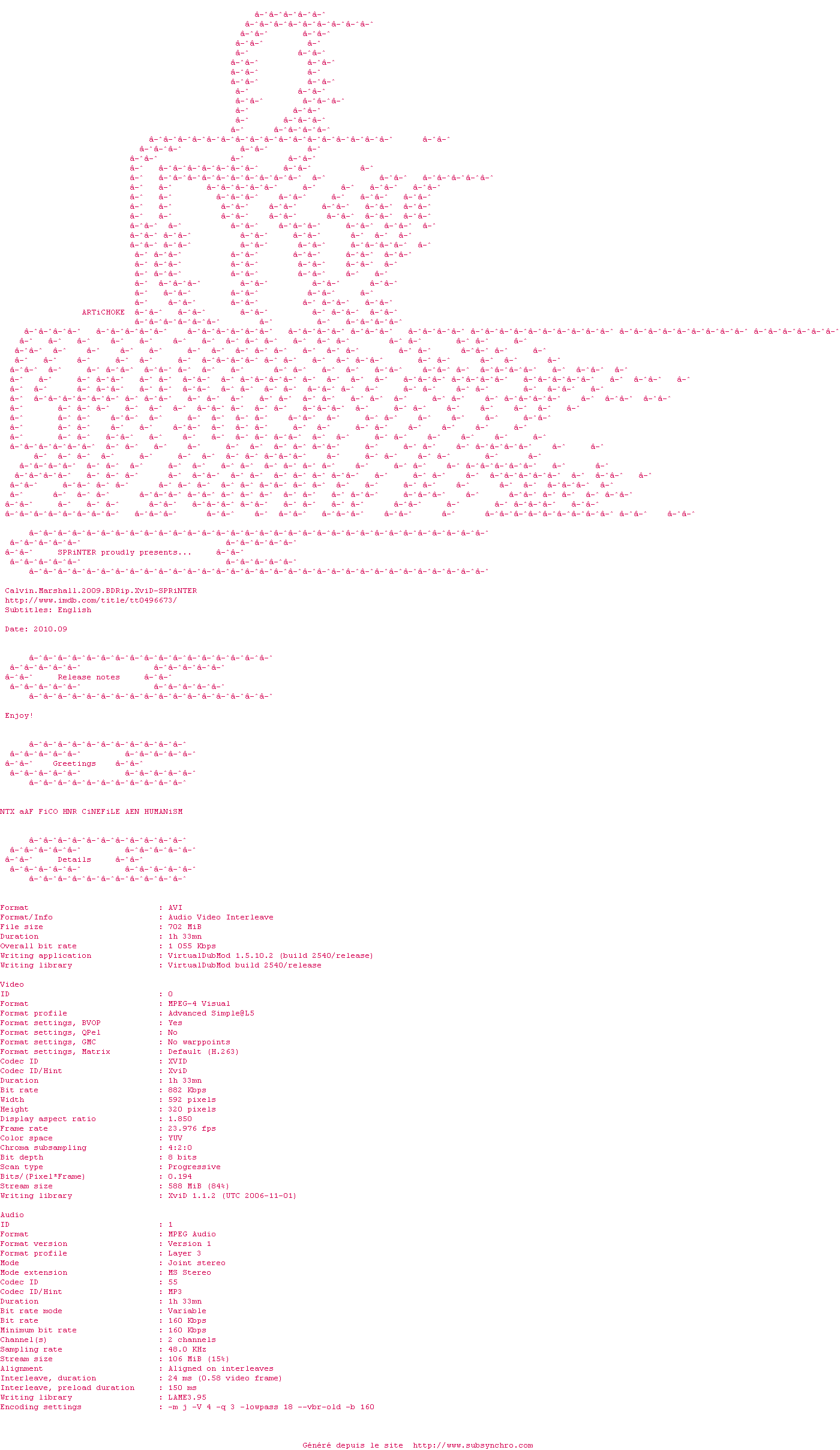 Voir le nfo de la release Calvin.Marshall.2009.BDRip.XviD-SPRiNTER