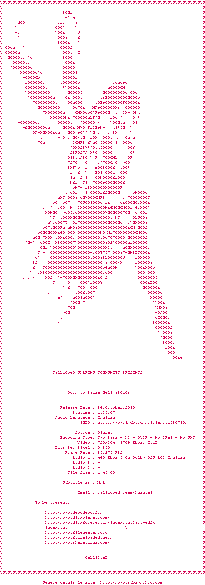 Voir le nfo de la release Born.to.Raise.Hell.2010.DVDRip.XviD-RUBY