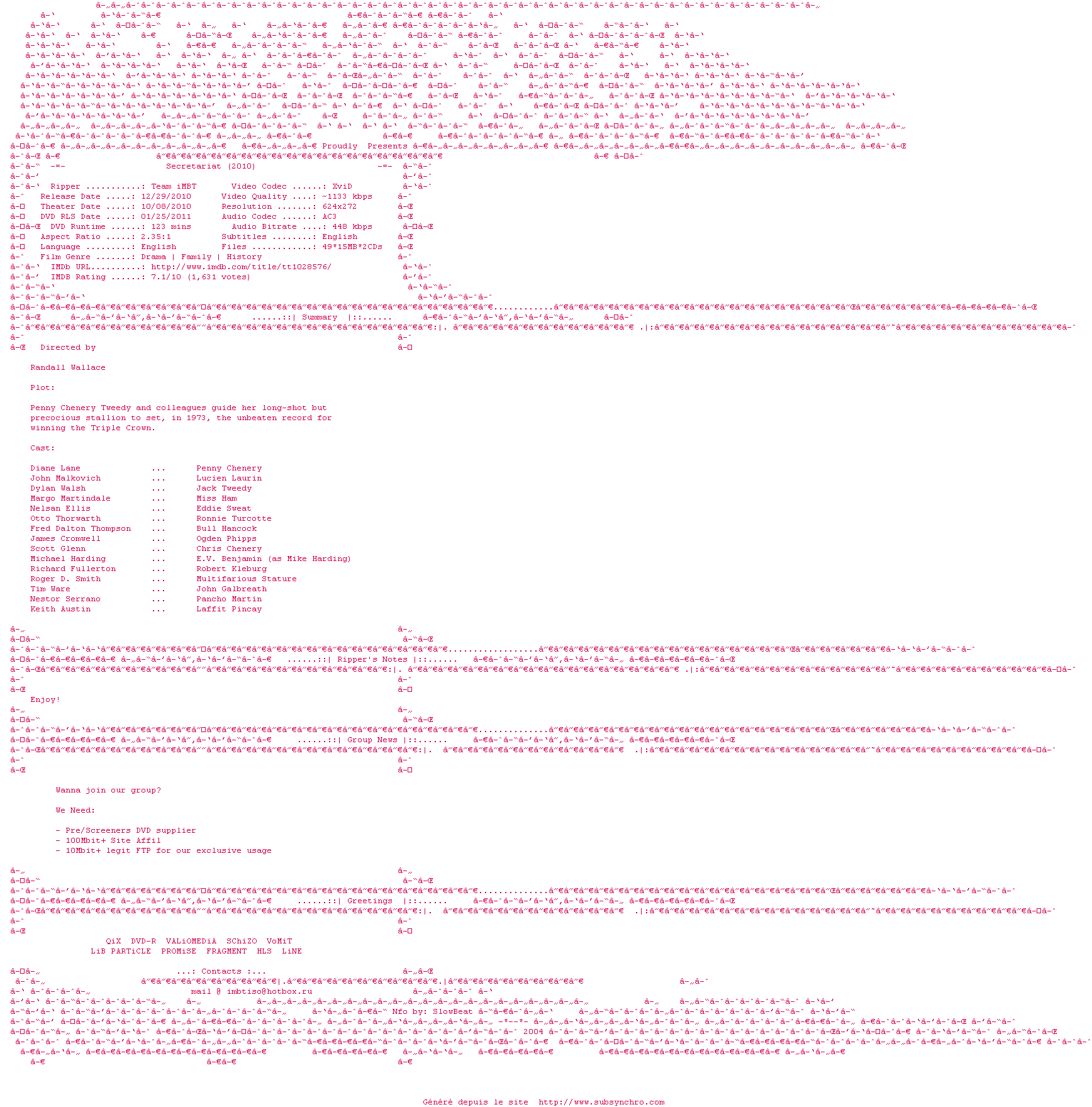 Voir le nfo de la release Secretariat.2010.BDRip.XviD-iMBT