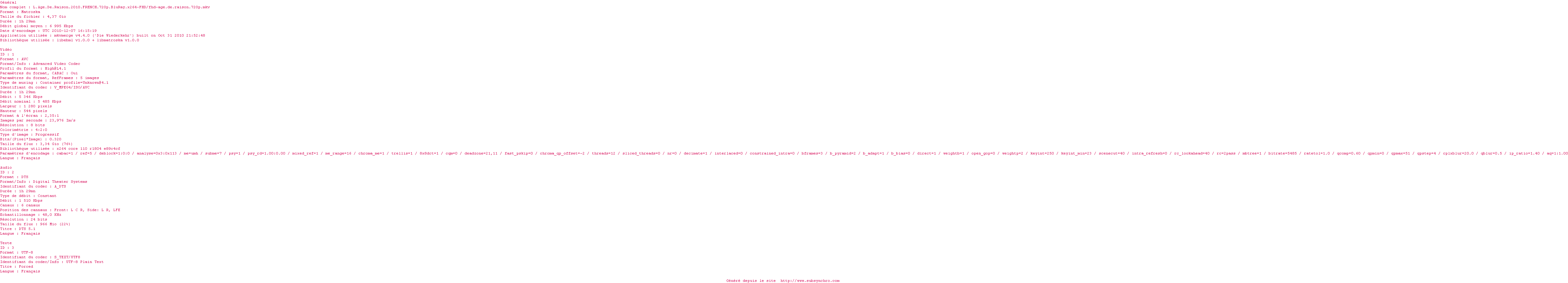 Voir le nfo de la release L.Age.De.Raison.2010.FRENCH.720p.BluRay.x264-FHD