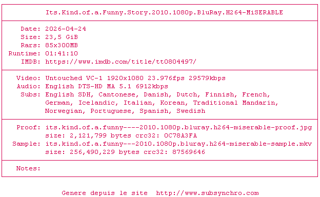 Y avez-vous pense ? Nous proposons déjà 1998 sous-titres pour le film Une drôle d'histoire. Avez-vous essaye de voir si ces sous-titres etaient compatibles avec cette release ? On vous laisse le soin de tester cela pour nous et de contribuer au site en postant le sous-titre en cas de compatiblite constatee !