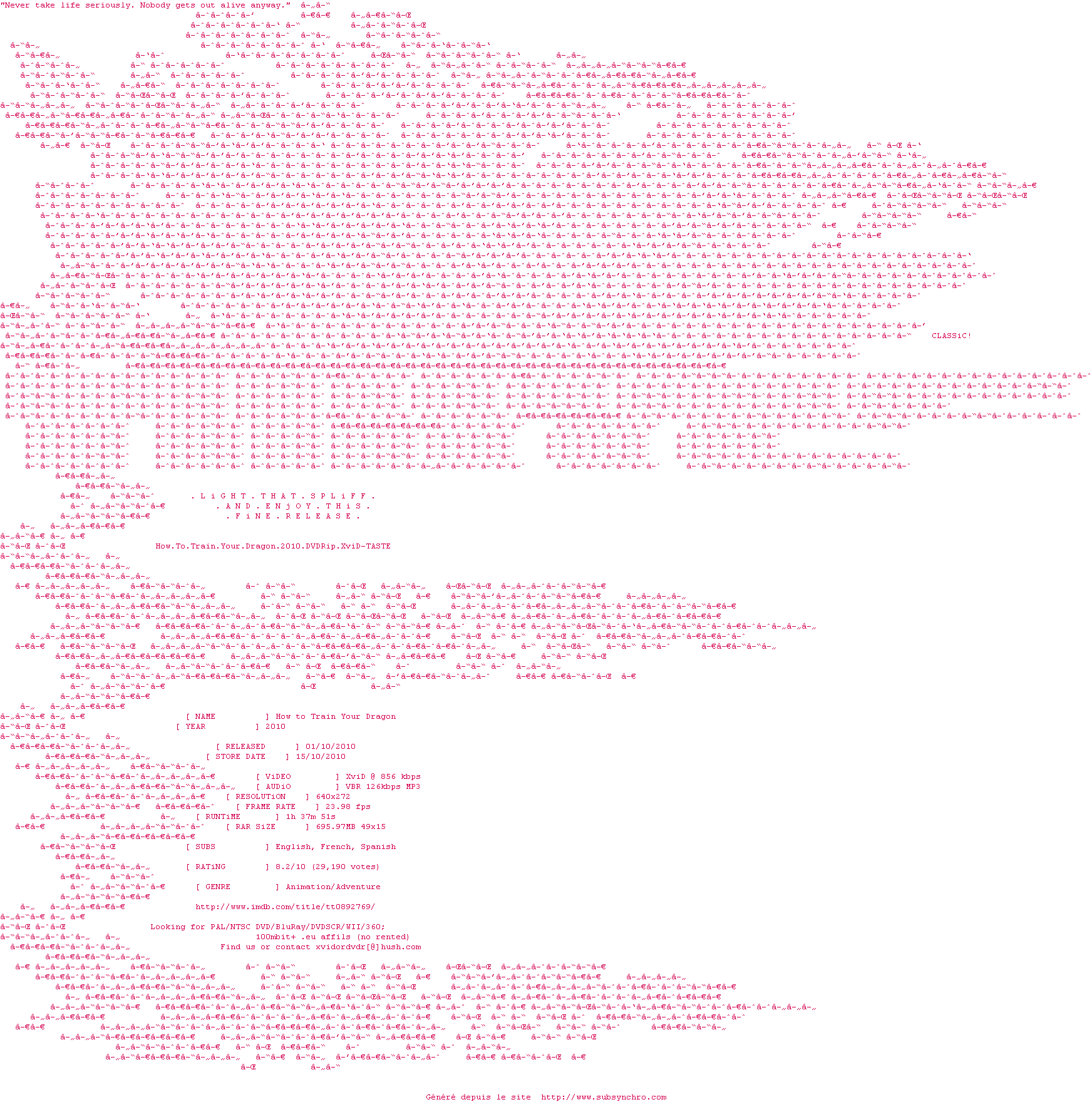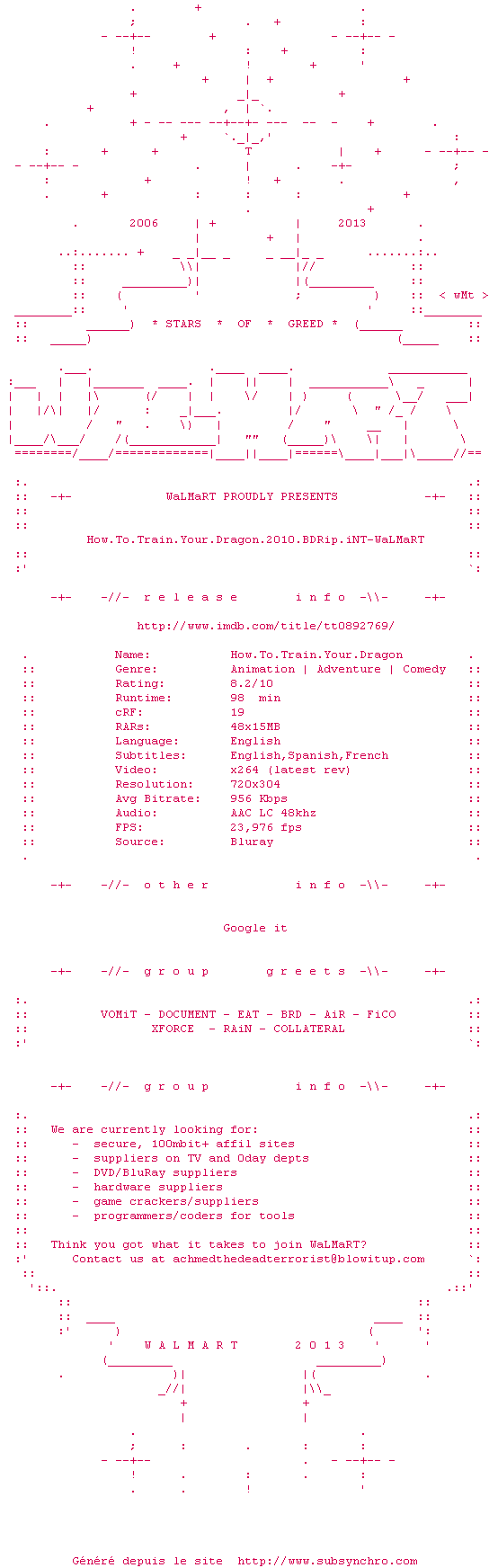 le meilleur de toutes les prods dreamworks ! de l'humour a en revendre, des dialogues vraiment forts, pertinent et un travail de graphisme vraiment magistrale. la musique est magnifique (sur le cul!!), bon le perso principal un peu simplet et basique mais ca passe ni vu ni connu. non sincerment vraiment peu de choses a redire, well done Chris