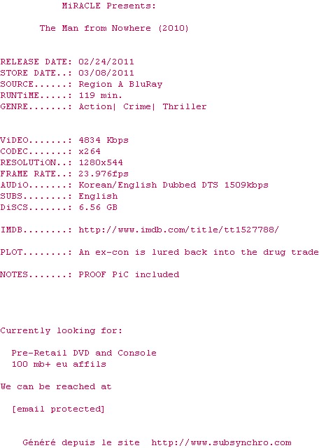 Le commentaire de jhonfonk Commente par jhonfonk (6), Le Mardi 03 Decembre 2013 à 09h20 Plutot a classer dans les blockbuster sud coréens, ce film est vraiment agréable a visioner. Le scénario tient bien la route c&39;est pas de l&39;américain. Je conseille pour les gens qui veulent visionner un film d&39;action a suspens sans toute les grossièretés à l&39;americaine. 9 / 10 1 0