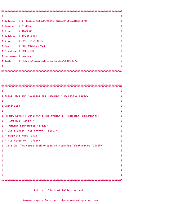Pour moi, LE film à voir de l&39;année 2010. Un rythme d&39;enfer, une BO qui donne envie de bouger dans son canapé, des vannes à se tordre de rire, au premier et au second degré... Des personnages haut-en-couleur qui, malgré tout, restent crédibles...