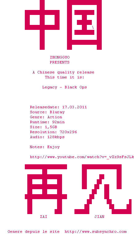 Voir le nfo de la release Legacy.Black.Ops.2010.BDRip.XviD-ZHONGGUO