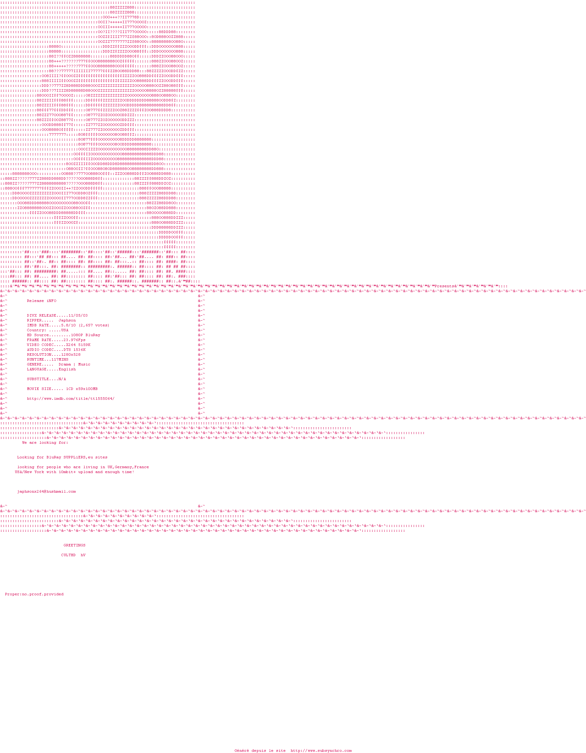 Voir le nfo de la release Country.Strong.2010.PROPER.720p.BluRay.x264-Japhson