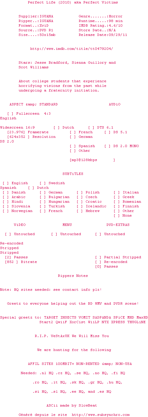 | VoMiT | Perfect.Life.2008.DVDRip.XviD-VoMiT OpenSubtitles | 0 fichier |