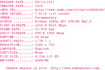 | Voir le nfo de la release A.Letter.To.Elia.720p.BluRay.x264.DTS-HDChina | HDChina | A.Letter.To.Elia.720p.BluRay.x264.DTS-HDChina OpenSubtitles | 0 fichier |