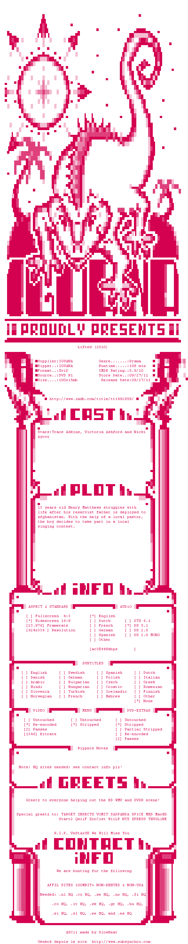 Voir le nfo de la release Lifted.2010.DVDRip.XviD-IGUANA