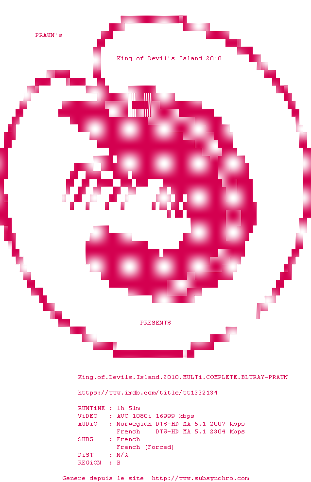 Y avez-vous pense ? Nous proposons déjà 2 sous-titres pour le film Les Révoltés de l'île du Diable / King of Devil's Island. Avez-vous essaye de voir si ces sous-titres etaient compatibles avec cette release ? On vous laisse le soin de tester cela pour nous et de contribuer au site en postant le sous-titre en cas de compatiblite constatee !