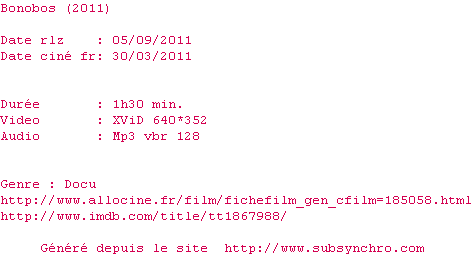 Le commentaire de Nuclear Commente par Nuclear (397), Le Mardi 31 Decembre 2013 à 11h11 Parce qu'il est foncièrement limité, le travail de Claudine André méritait plus qu'un documentaire anecdotique miné par un épouvantable anthropomorphisme. 6 / 10 1 0