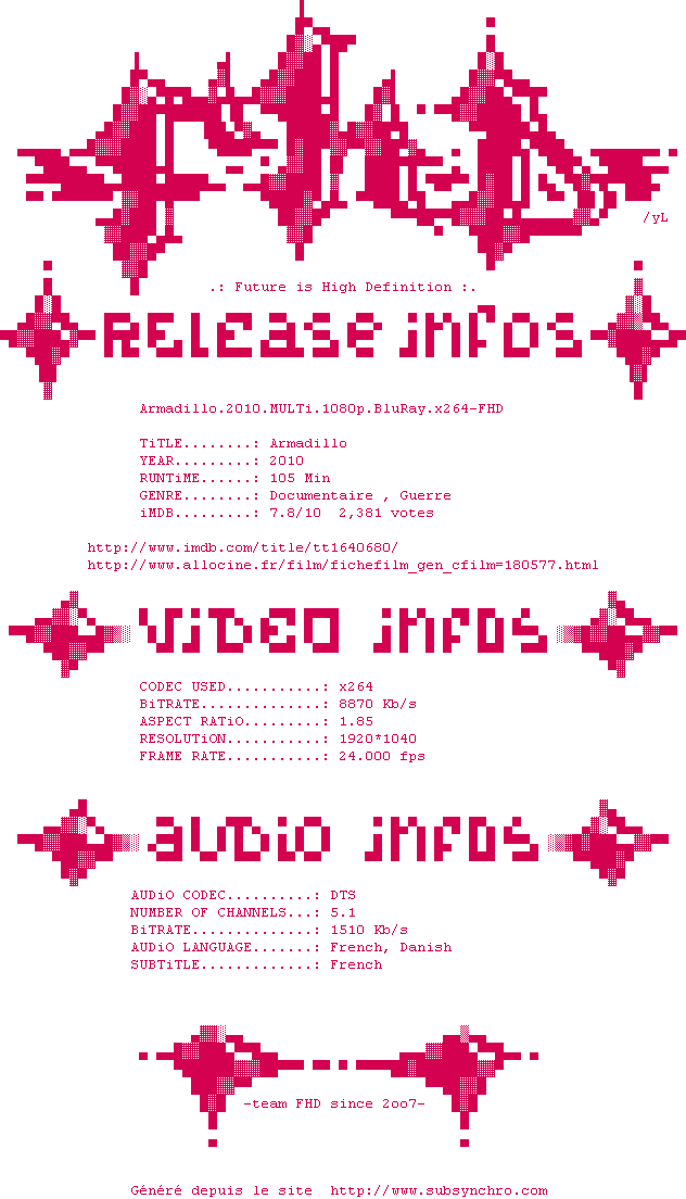 Telechargez le RSS « Fichier de la release Armadillo.2010.MULTi.1080p.BluRay.x264-FHD »