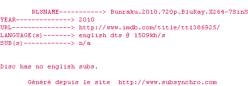 Il n'y a actuellement aucun sous-titre pour cette release. Cliquez ici pour en ajouter un.