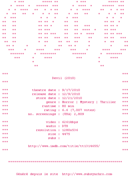 Telechargez le RSS « Fichier de la release Devil.720p.Bluray.x264-CBGB »