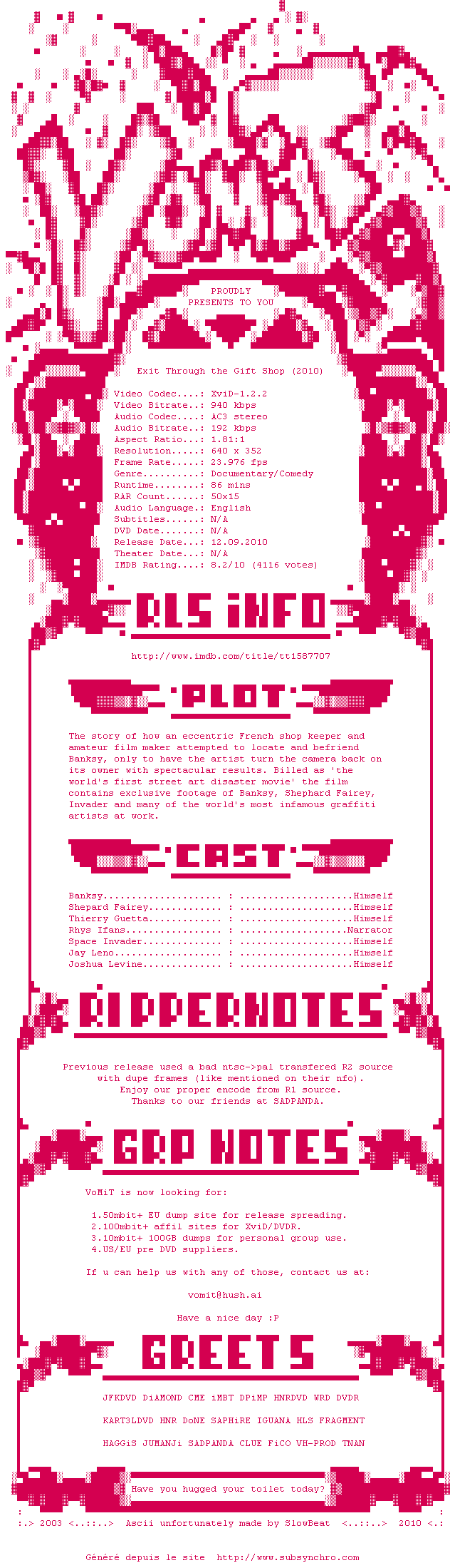 NFO de Exit.Through.The.Gift.Shop.2010.PROPER.DVDRip.XviD-VoMiT