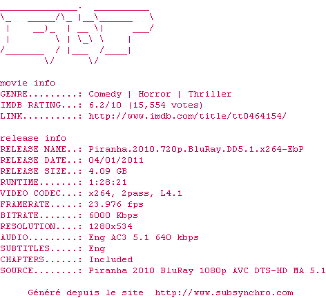 Telechargez le RSS « Fichier de la release Piranha.2010.720p.BluRay.DD5.1.x264-EbP »