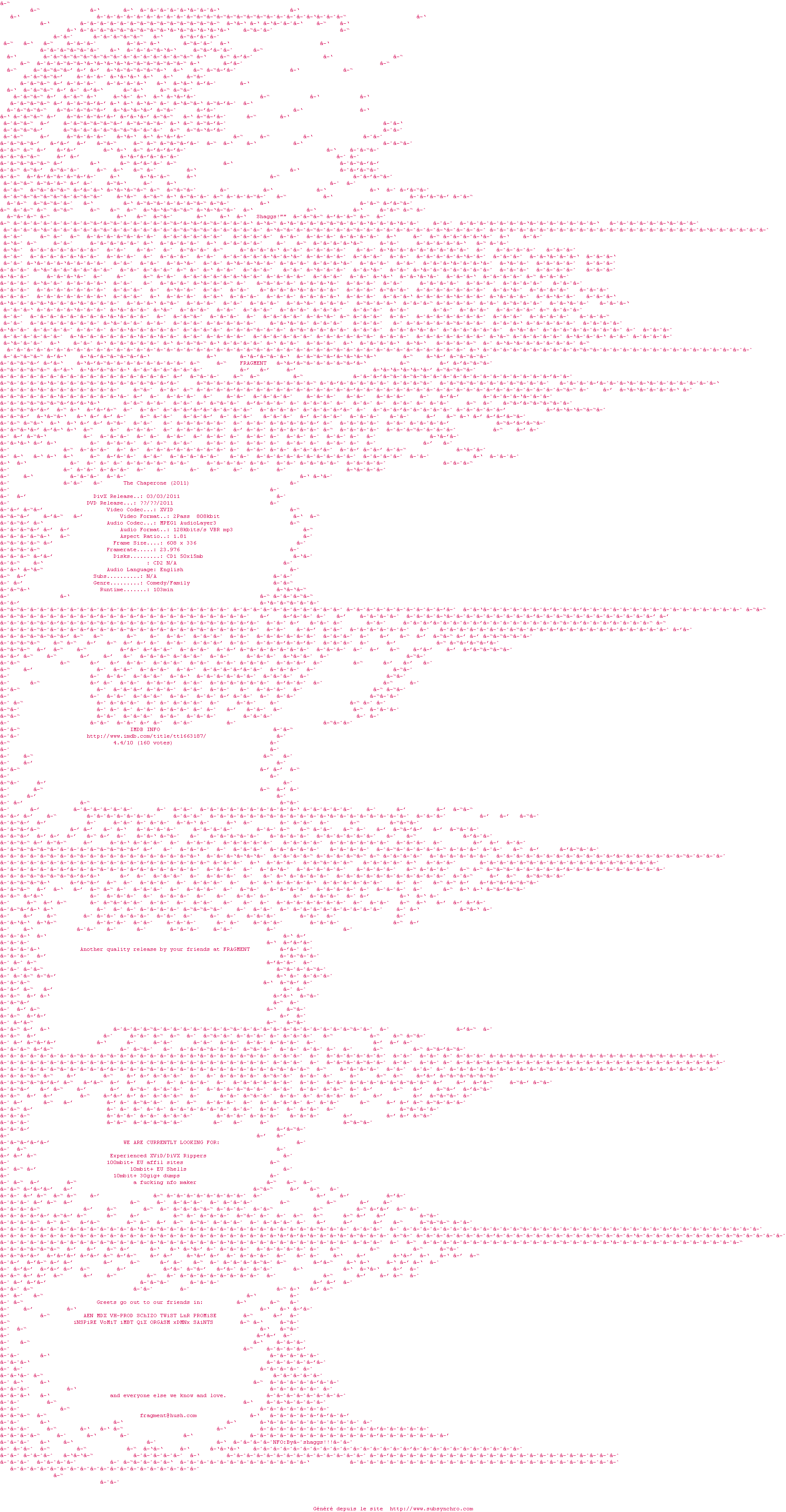 | THUGLiNE | The.Chaperone.2011.720p.BluRay.x264-THUGLiNE OpenSubtitles | 0 fichier |