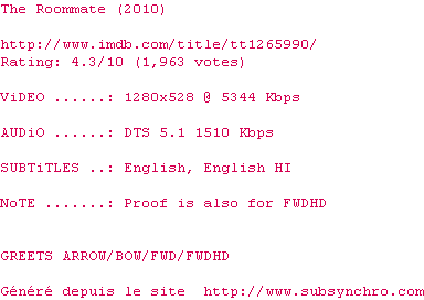 Voir le nfo de la release The.Roommate.BDRip.XviD-ARROW