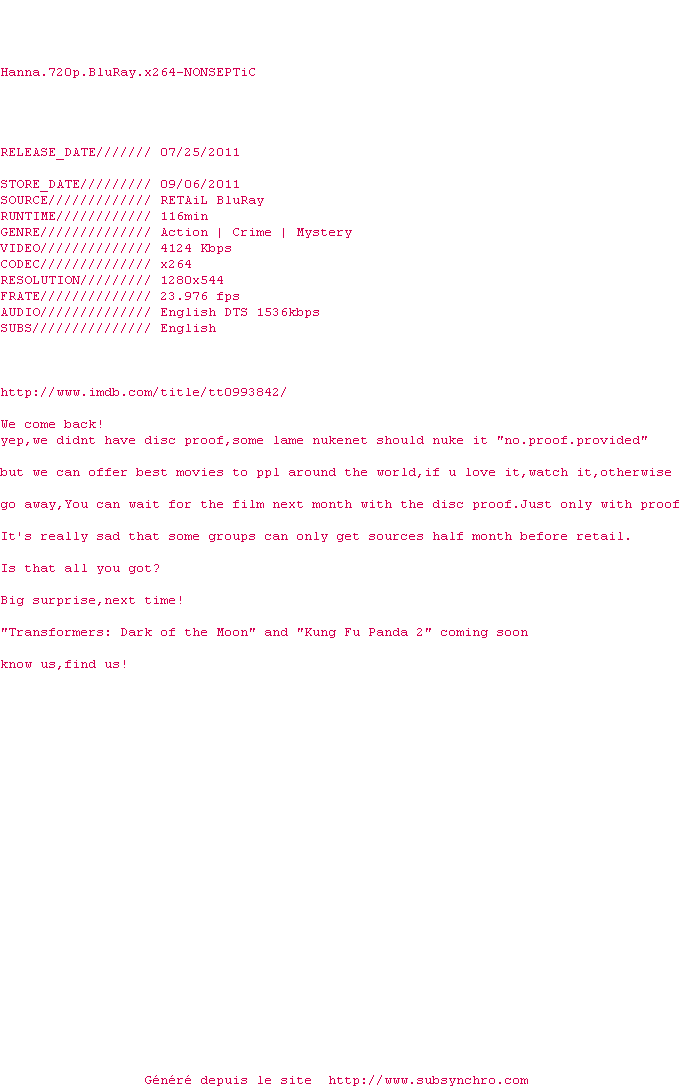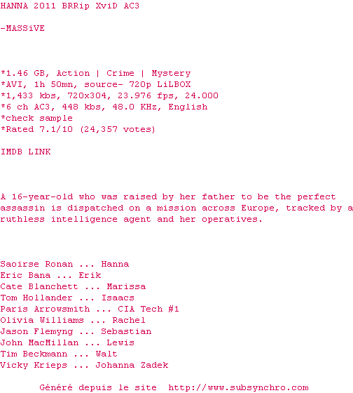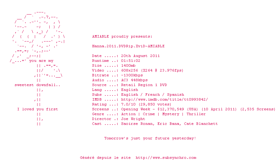 Le commentaire de plopingo Commente par plopingo (43), Le Lundi 01 Aout 2011 à 12h38 Très bon film, avec une superbe interprétation de Saoirse Ronan 2 0