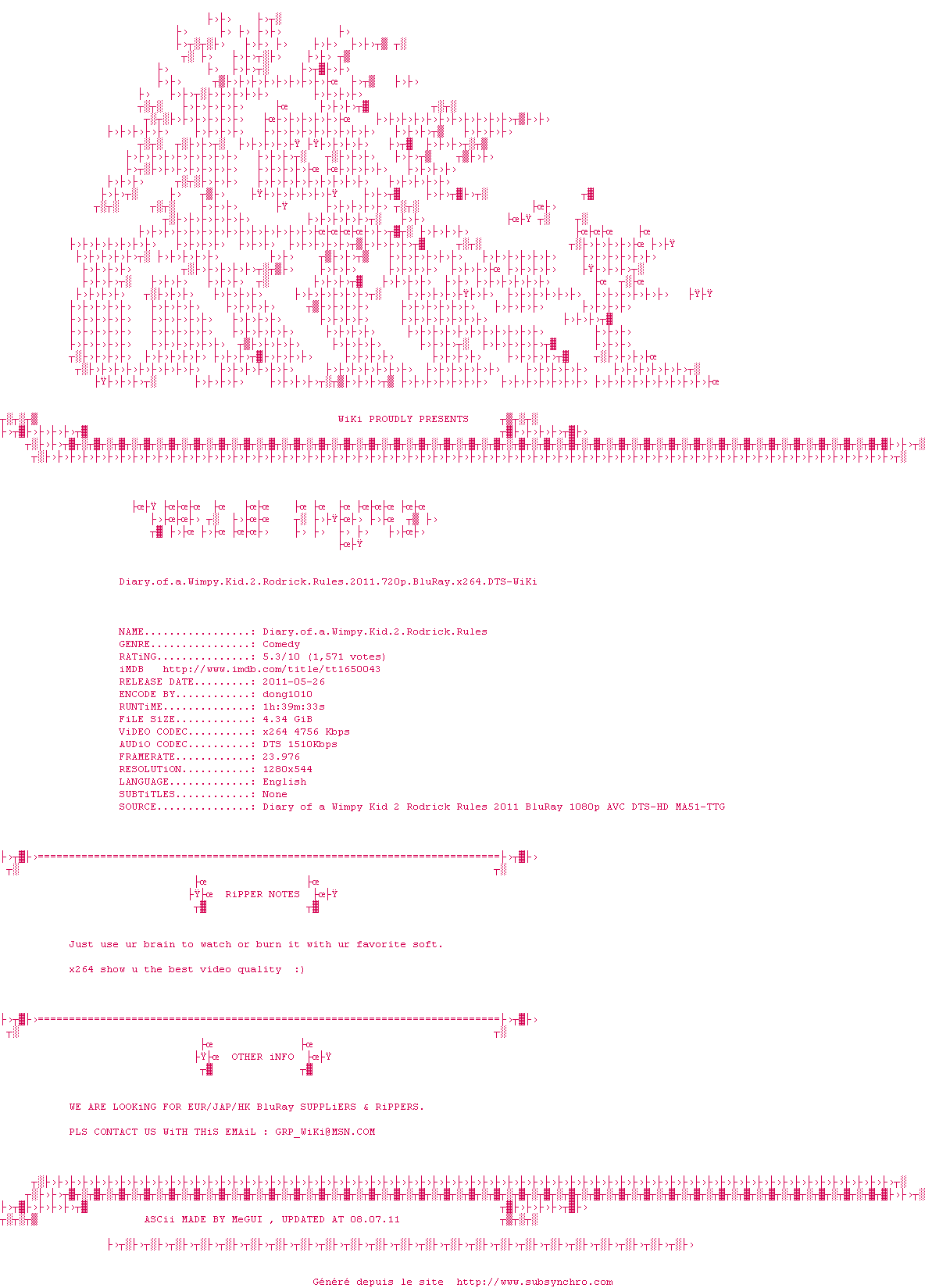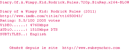 Voir le nfo de la release Diary.of.a.Wimpy.Kid.2.Rodrick.Rules.2011.720p.BluRay.x264.DTS-WiKi