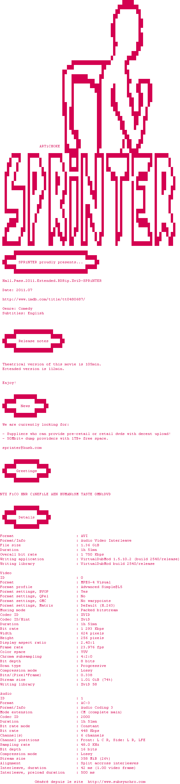 Il y a 1 commentaire pour le film #3082 !Le commentaire de SubSynchro