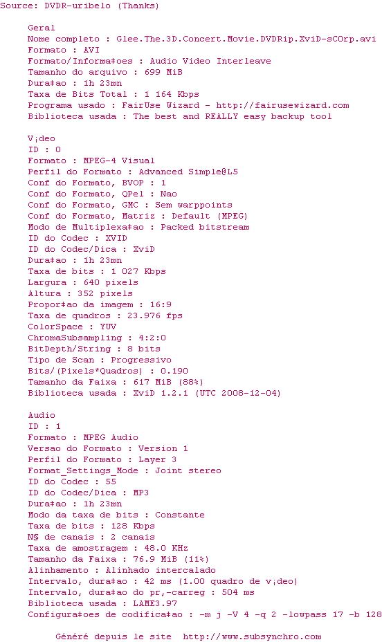 Voir le nfo de la release Glee.The.3D.Concert.Movie.DVDRip.XviD-sC0rp