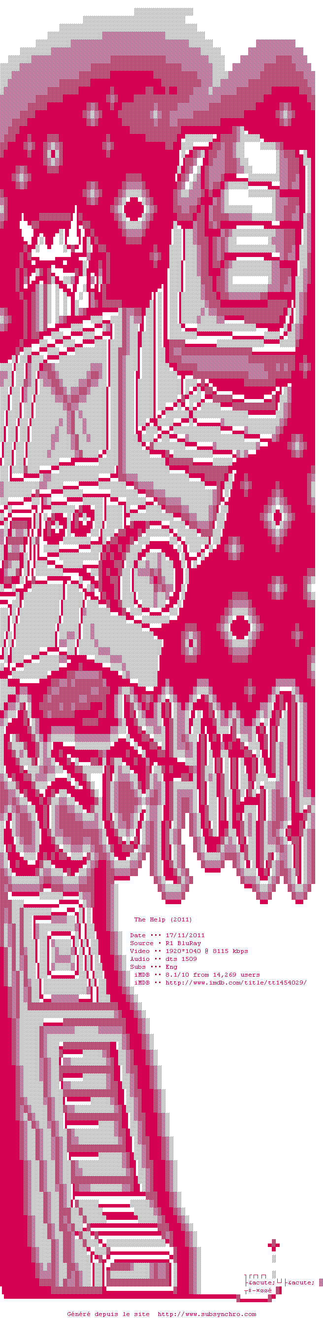 Voir le nfo de la release The.Help.2011.1080p.BluRay.x264-SECTOR7