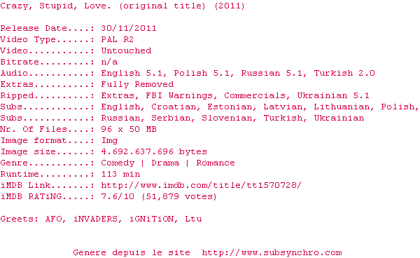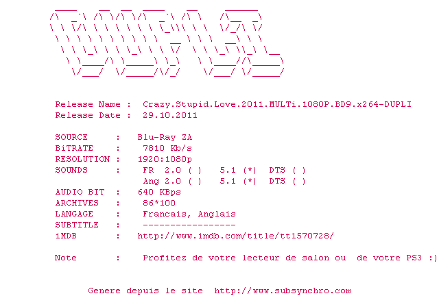 Le commentaire de SubSynchro Commente par SubSynchro (340), Le Mercredi 22 Fevrier 2012 à 23h15 Exactement ce dont j'avais besoin pour me rebooster ! Je le conseil à tous... On peut toujours tout surmonter ! 10 / 10 1 0