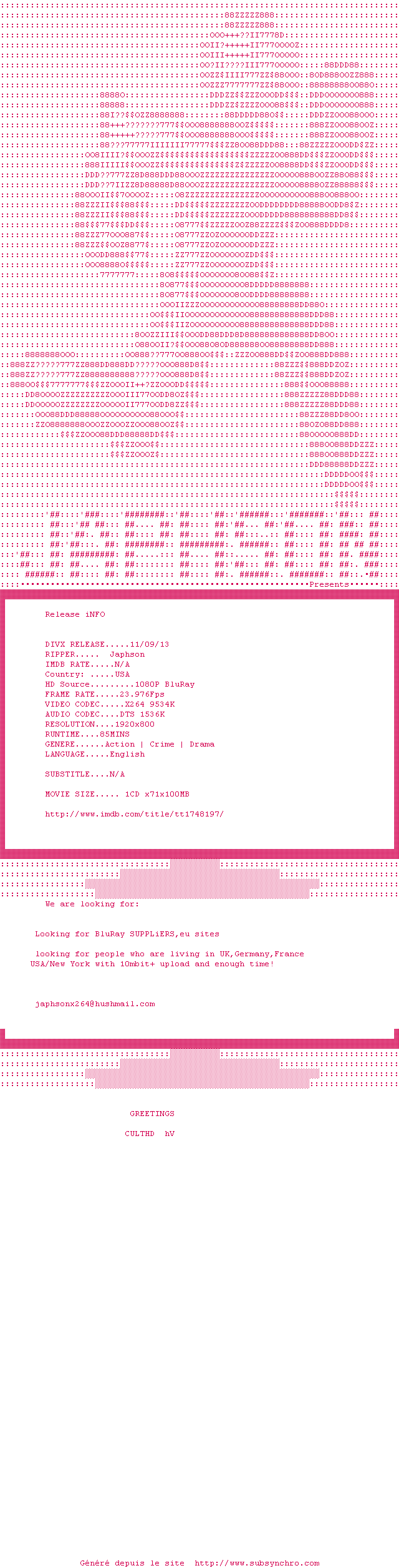 Voir le nfo de la release Set.Up.2011.1080p.BluRay.x264-Japhson