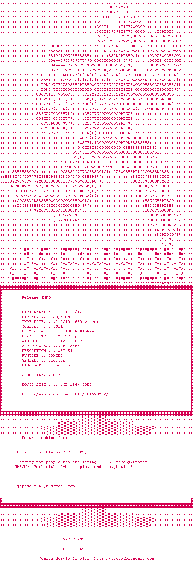 Voir le nfo de la release Freerunner.2011.1080p.BluRay.DTS.x264-CHD
