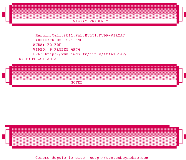 Y avez-vous pense ? Nous proposons déjà 1839 sous-titres pour le film Margin Call. Avez-vous essaye de voir si ces sous-titres etaient compatibles avec cette release ? On vous laisse le soin de tester cela pour nous et de contribuer au site en postant le sous-titre en cas de compatiblite constatee !