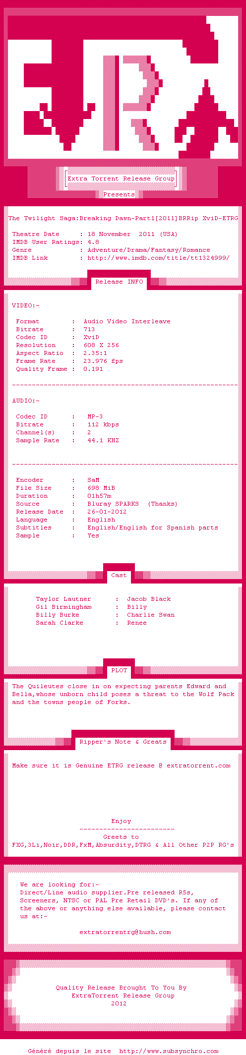 Le commentaire de SubSynchro Commente par SubSynchro (340), Le Jeudi 01 Decembre 2011 à 17h15 Surement parce que je suis pas fan mais j'ai trouvé ca un peu moyen, tres a l'eau de rose ... Donc moué bof ! 6 / 10 1 0