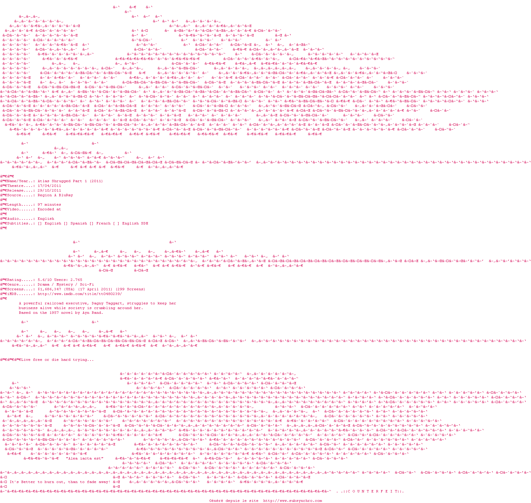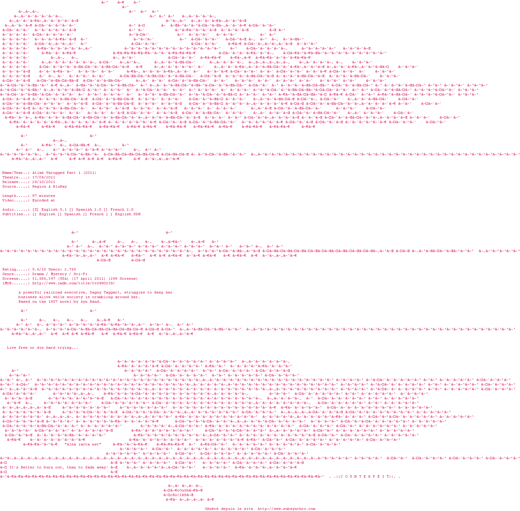 Voir le nfo de la release Atlas.Shrugged.Part.1.LIMITED.2011.720p.BluRay.x264-Counterfeit