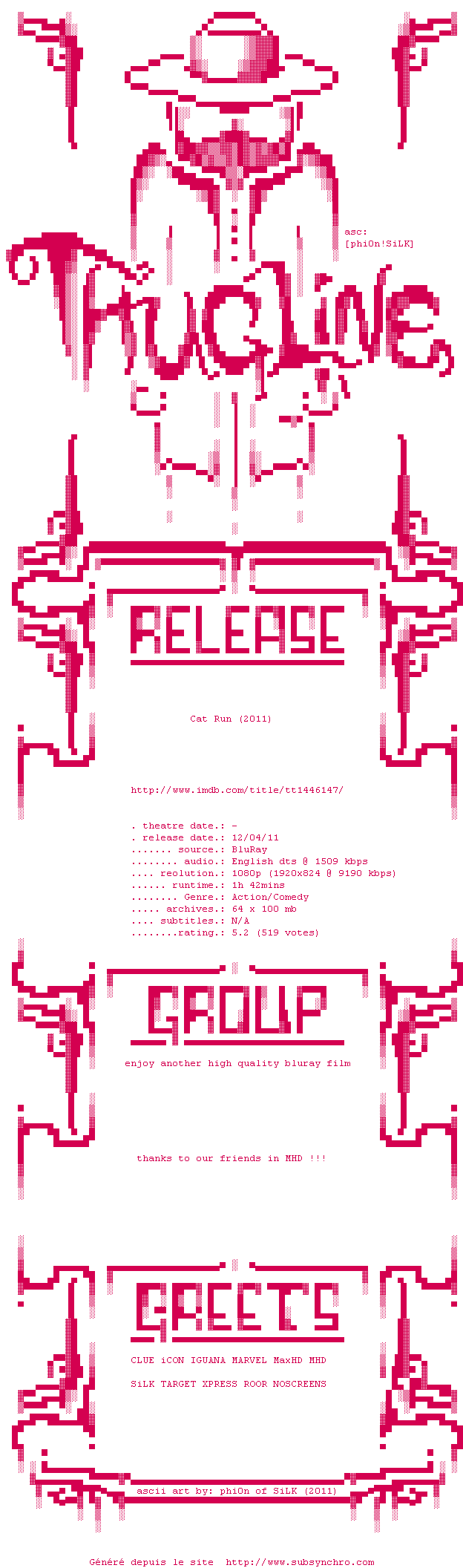 Voir le nfo de la release Cat.Run.2011.1080p.BluRay.x264-THUGLiNE