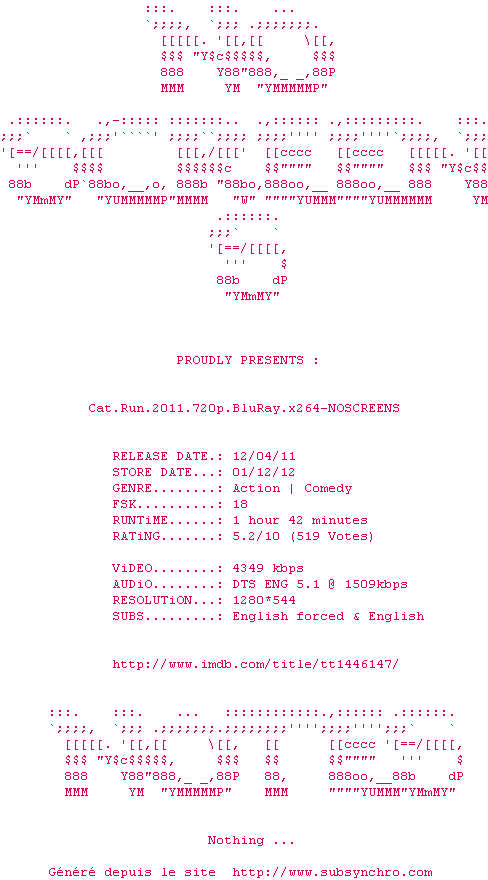 Voir le nfo de la release Cat.Run.2011.BDRiP.XViD-NOSCREENS