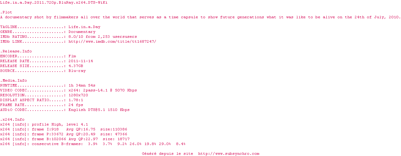 Voir le nfo de la release Life.in.a.Day.2011.DVDRip.x264-Ganool