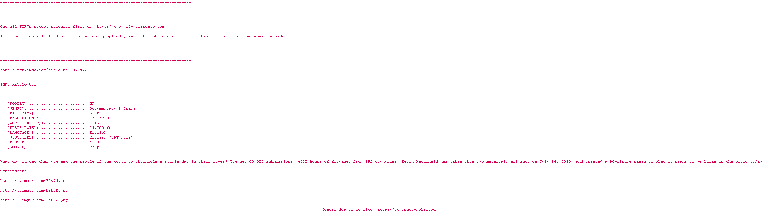 Voir le nfo de la release life.in.a.day.2011.720p.bluray.x264-YIFY