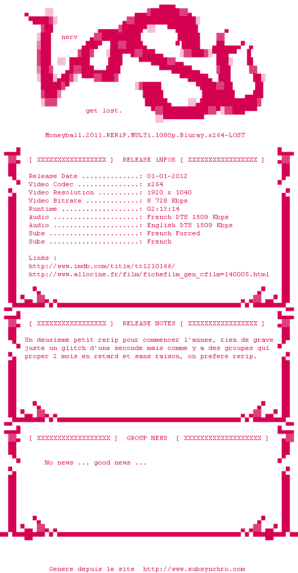 Y avez-vous pense ? Nous proposons déjà 1924 sous-titres pour le film Le Stratège. Avez-vous essaye de voir si ces sous-titres etaient compatibles avec cette release ? On vous laisse le soin de tester cela pour nous et de contribuer au site en postant le sous-titre en cas de compatiblite constatee !