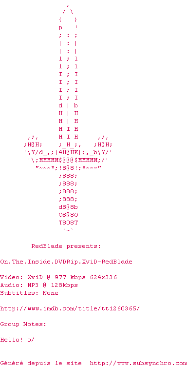Voir le nfo de la release On.The.Inside.DVDRip.XviD-RedBlade
