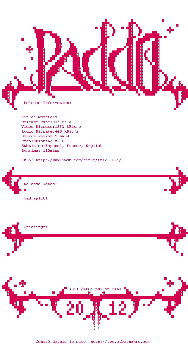 Film très moyen. Ils ont voulu utiliser de gros effets spéciaux, mais les moins chers possibles dirait-on. Niveau costume ca en devient même drôle en voyant le look des Dieux... Entre le choc des titans et 300, mais leurs mauvais côtés.