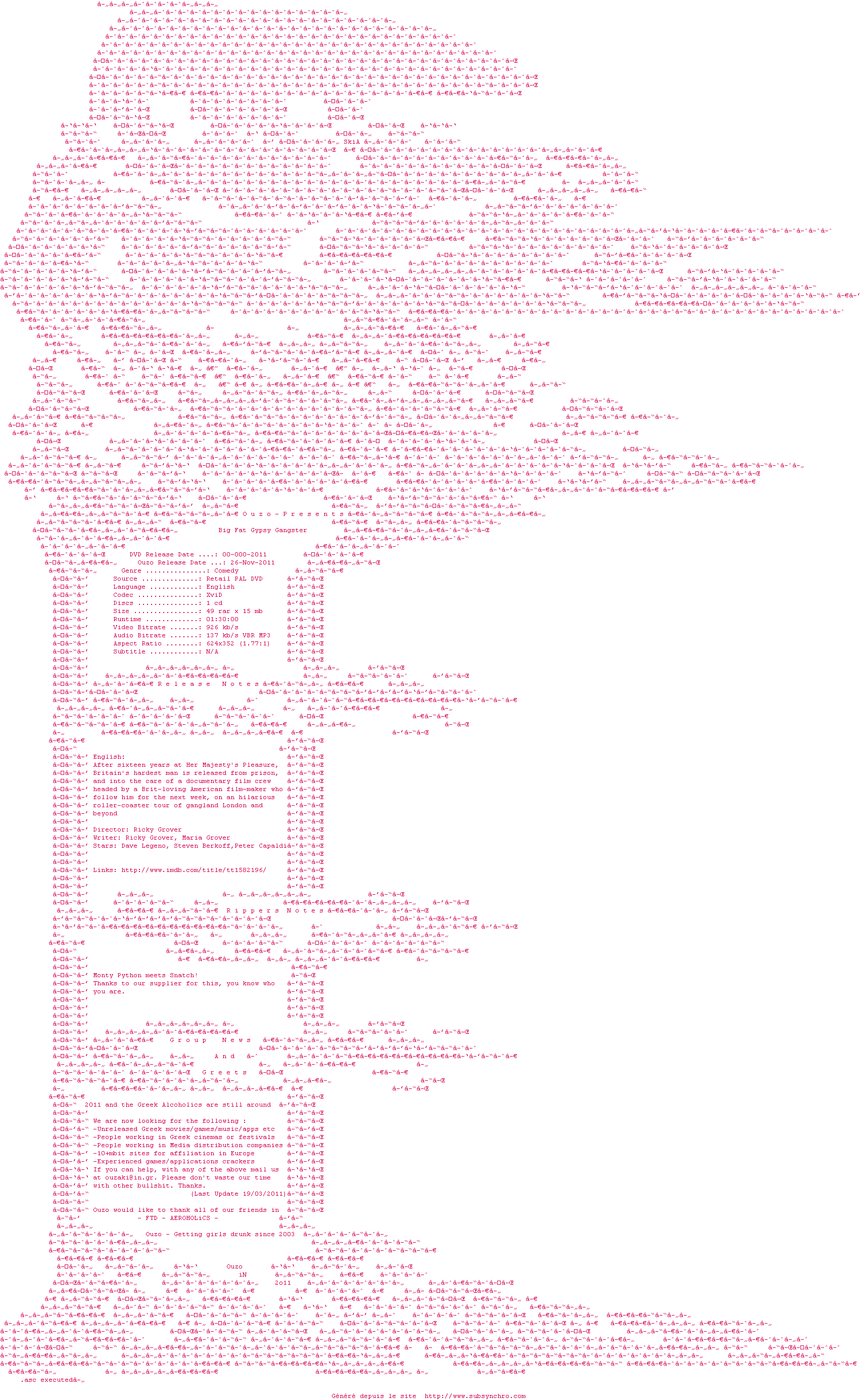 Voir le nfo de la release Big.Fat.Gypsy.Gangster.2011.DVDRip.XviD-Ouzo