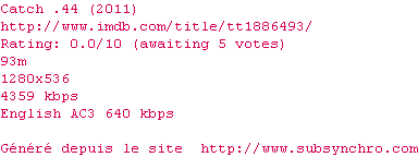Voir le nfo de la release Catch.44.2011.BDRip.XviD-aAF